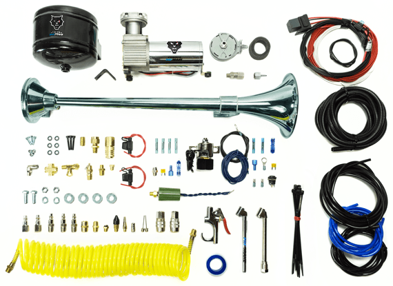 高级套件配有喇叭和船上的空气套件。没有任何问题,带有船上空气系统PACBRAKE也提供基本套件。