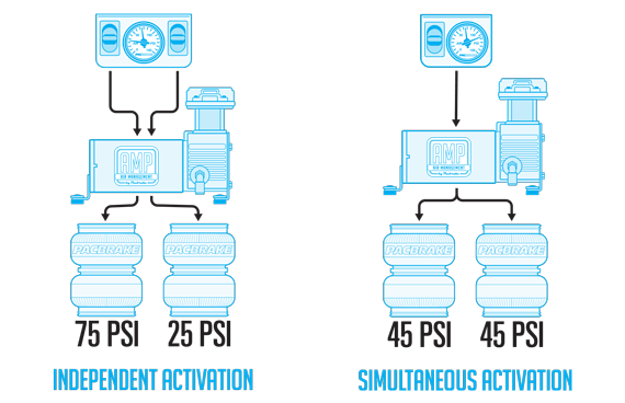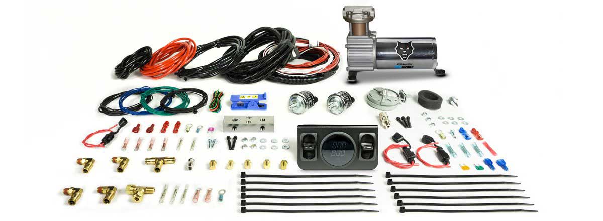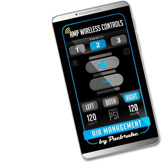 空气弹簧控制套件随附所有操作空气弹簧(或其他气动附件)所需的工具,这些工具可从配备新型Pacbrake无线应用程序的智能手机或驾驶室内配备Pacbrake控制装置的驾驶员座椅上使用。