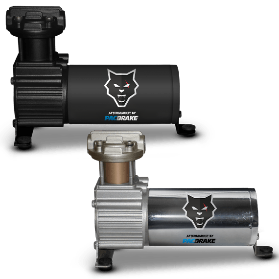 HP425系列-我们的1/4 HP Pacbrake空气压缩机有50%的占空比(开30分钟/关30分钟),并提供12 VDC。