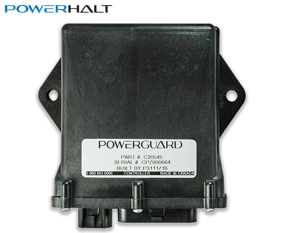 PowerGuard自动控制系统通过安装在传动钟罩上的齿轮齿形传感器监测发动机转速,该传感器使用一个现有的辅助端口或通过钻攻一个新端口。控制器有一个可编程的跳闸点-当程序预设的速度超过,紧急引擎关闭将自动发生。