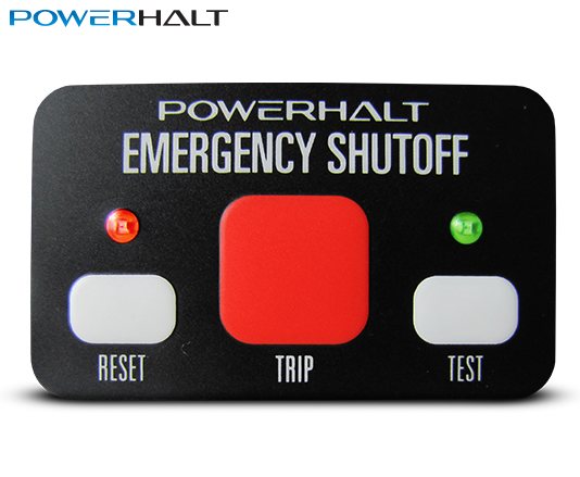 PowerHalt的PH3膜开关是一种低规格的膜开关,具有跳闸、测试、复位和设置功能,带有LED灯。