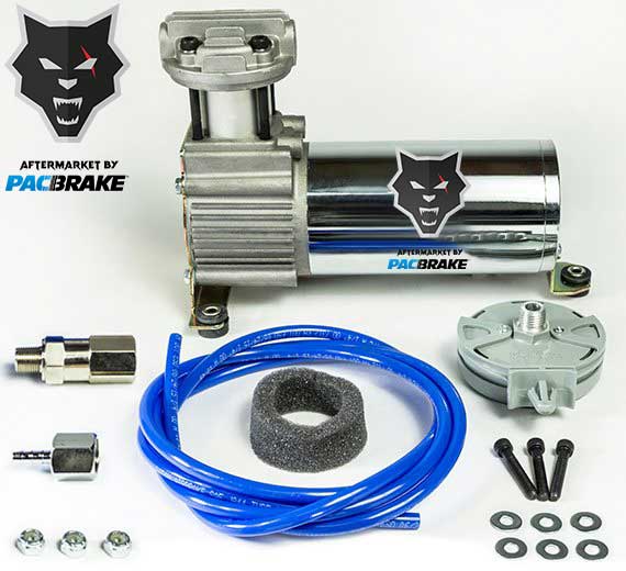 Pacbrake on my Bullet Proofed 6.0L Powerstroke. has been in service for 10 years and performs to the highest level with HEAVY loads. Compressor finally gave out and had to replace. I run a 5 gallon air tank and this compressor supplies the Exhaust Brake and In Cab controlled Air Bags.