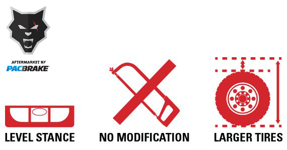 Pacbrake有一个解决方案,通过安装我们的轻质铝垫片之上的工厂线圈弹簧水平车辆的立场。
