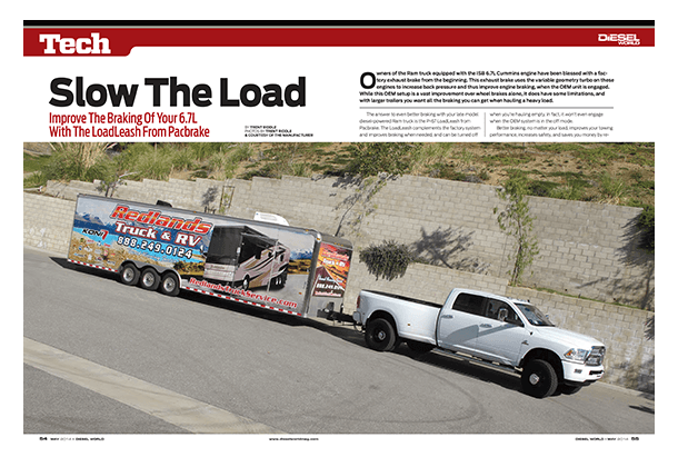我们联系了位于加州雷德兰兹的雷德兰兹卡车和房车公司的专家,并被邀请来参观Pacbrake的安装LoadLeash然后骑一骑,看看在刹车性能上的不同。由于Redland Truck和RV专门从事所有柴油方面的工作,它们被用来安装所有类型的制动系统,以及维修和升级OEM设备。我们的安装只花了一天多的时间,但这部分是因为安装是在2013年Ram 3500上,工厂做了一些更改,必须第一次解决。Redlands的工作人员轻松地做到了这一点,并且第一次就做对了。